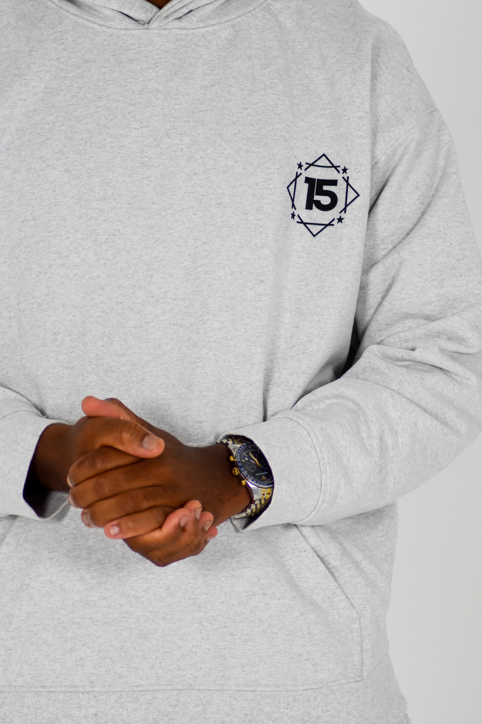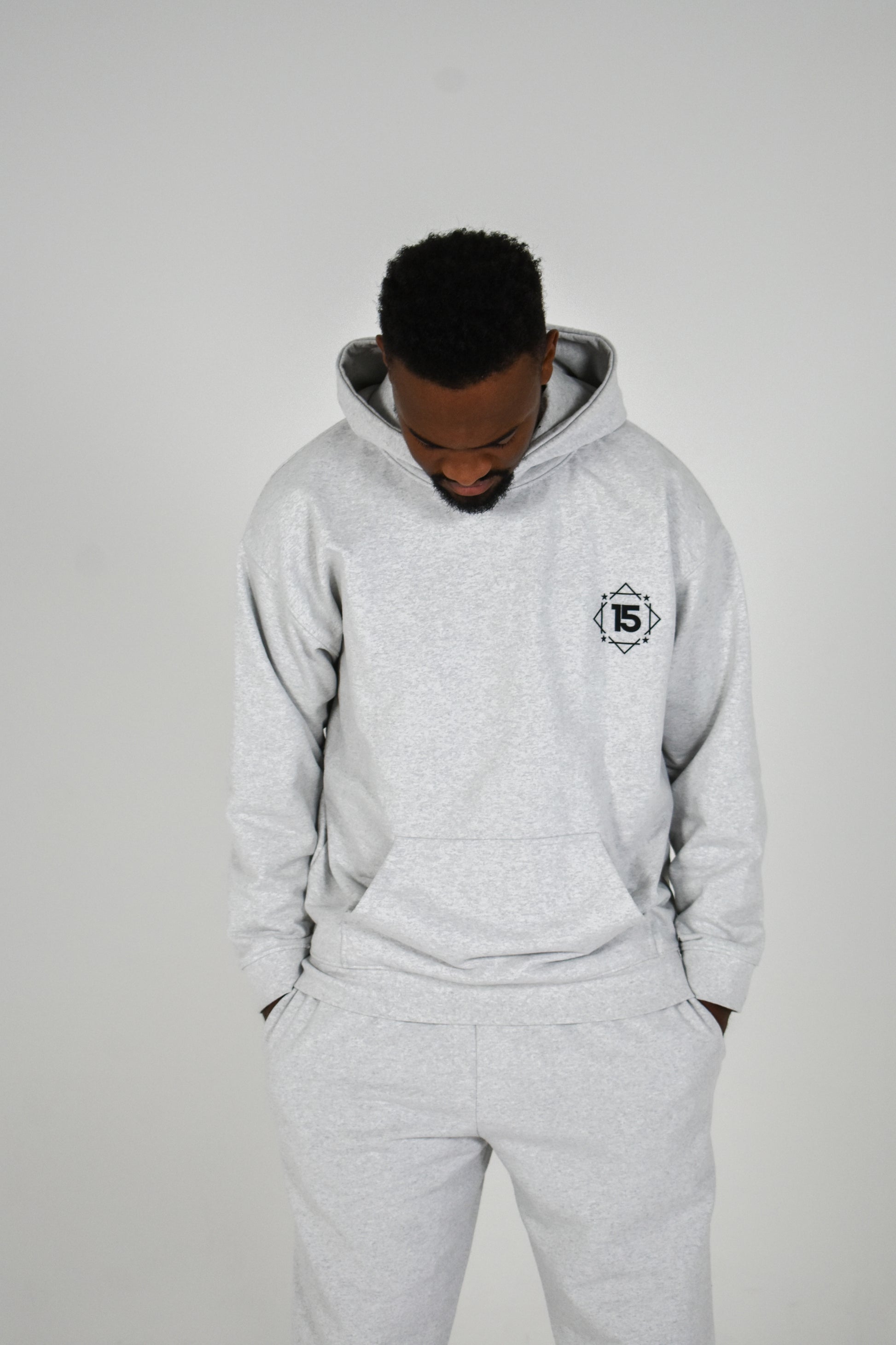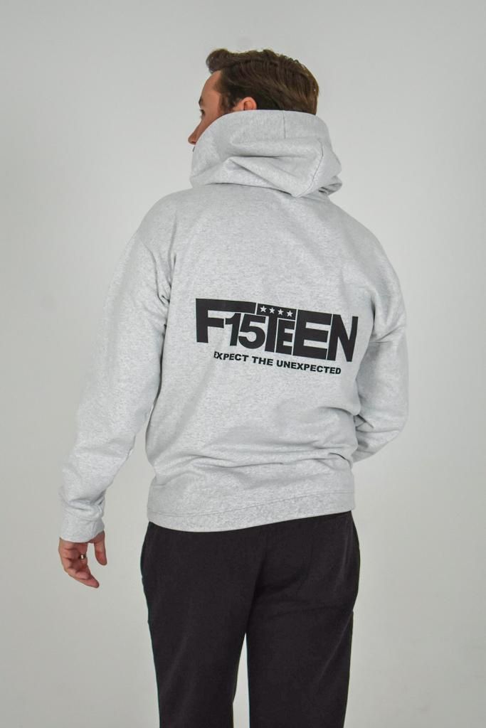 The F15teen Hoodie in Grey is crafted from luxury heavyweight recycled cotton, with an oversized fit. The hoodie has ribbed hems and cuffs and is finished in 3D printing front and back.
